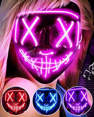 AnanBros Máscara de Halloween con luz LED que brilla en la oscuridad 3 modos de iluminación para juegos de disfraces cosplay y fiestas
