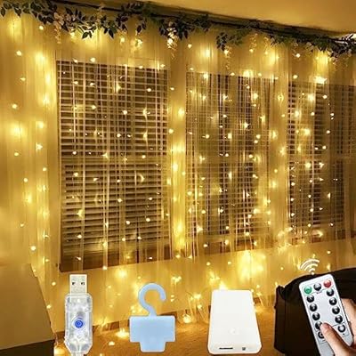 Microwear - Cortina de Luces 3x3m 300 LEDs Cortina Luces Luz de Cortina con Mando 8 Modos Alimentación por USB o pilas Impermeable Guirnaldas Luminosas Navidad para Casa Ventana Boda Fiesta Decoración Navideña
